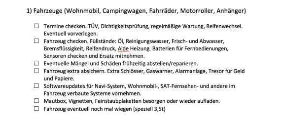 Diese Liste beschränkt sich auf die wichtigen Dinge zur Reisevorbereitung. Sie ist keine Packliste. Falls ihr noch Anmerkungen und weitere Ideen habt, meldet euch gerne, um die Liste für alle zu vervollständigen.