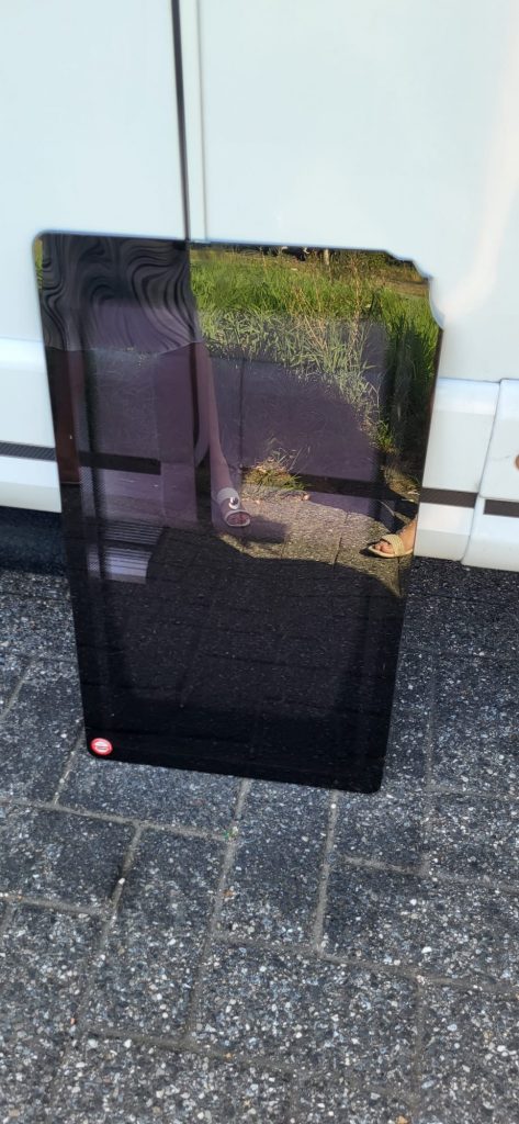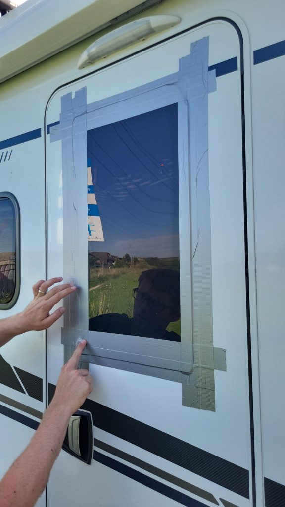 Erst vor 4 Wochen ist das Fenster der Aufbautür neu eingeklebt worden, da ich im oberen Bereich Wassereinbruch hatte. Die Reparatur sah auch auf den ersten Blick professionell aus und das Fenster war wieder dicht. Jetzt hat sich meine Tochter und mein Schwiegersohn meine „Vanny“ ausgeliehen für einen Kurztrip nach Ostfriesland. Sie haben es gerade mal 20 km bewegt, als sich das Fenster bei 110 km/h auf der Autobahn aus dem Rahmen löste und in den nachfolgenden Verkehr geschwebt ist. Gott-sei-Dank hat es keinen anderen Autofahrer getroffen. Die Polizei konnte es nach Meldung sicherstellen und meiner Tochter vorbei bringen, so dass es provisorisch wieder befestigt werden konnte.