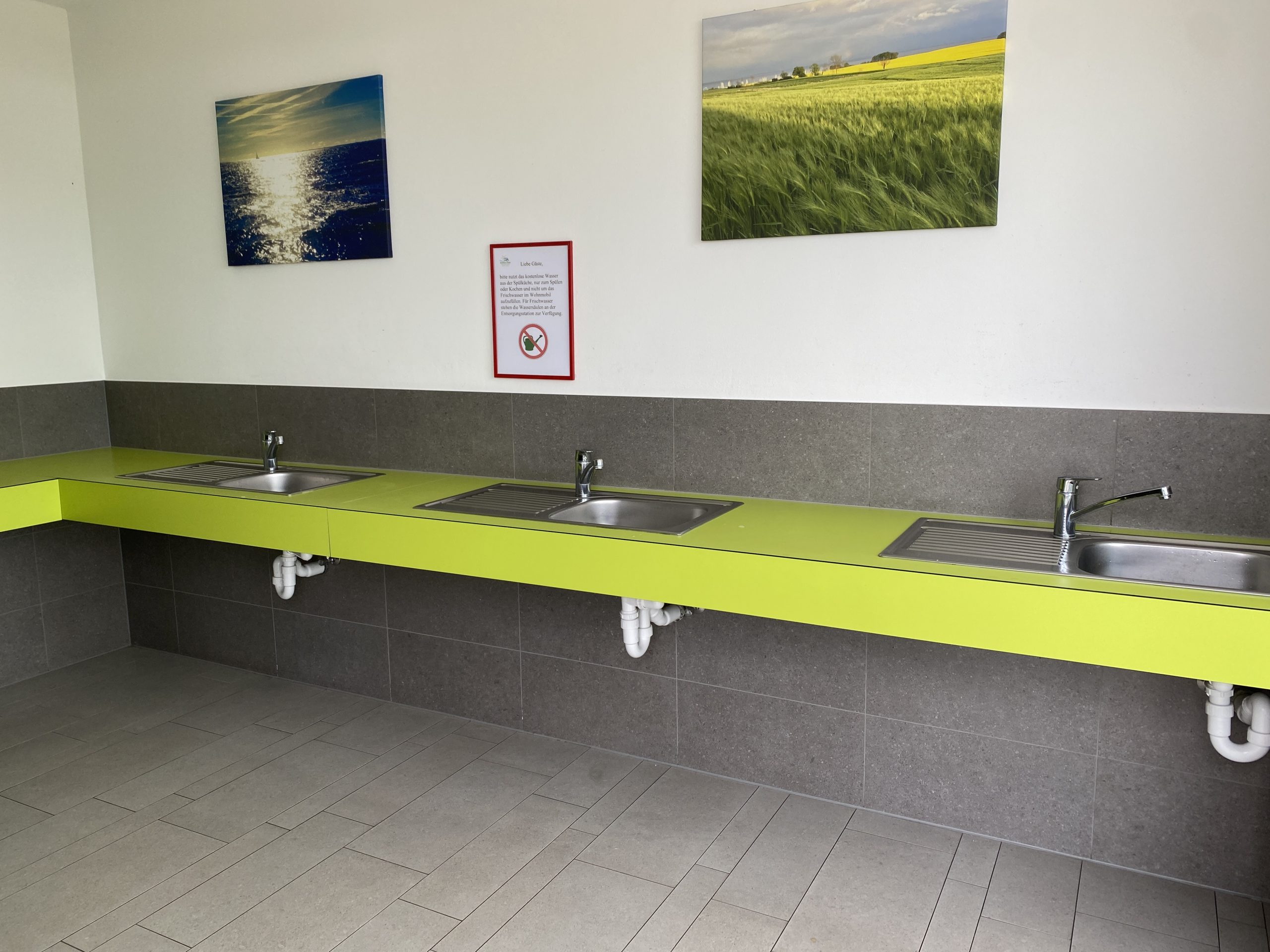 Versorgung, Chemiekloentleerung, Duschen und Strom kosten extra und werden von der Karte abgezogen oder bar bezahlt. Entsorgung, WLAN, WC sind kostenlos. Dazu gibt es eine Hundedusche, Lounge Areas mit Strandkörben, Waschmaschinen und im Sommer einen Foodtruck und einen Eismann, der öfters über den Platz fährt.