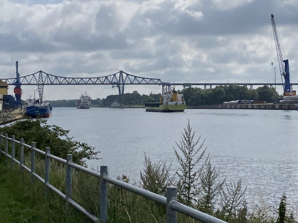 Schöner Stellplatz am Nord-Ostsee-Kanal auf der Rendsburger Seite. Direkt neben der Eisenbahn-Hochbrücke mit der Schwebefähre. Wer nicht auf Zugverkehr, Schiffshörnern, und Hupen steht, ist hier verkehrt. Der Geräuschpegel kann schon recht hoch sein. Heute liefen den ganzen Tag 2 Bagger und Kräne im nahegelegenen Hafen, die ein Schiff entladen haben.