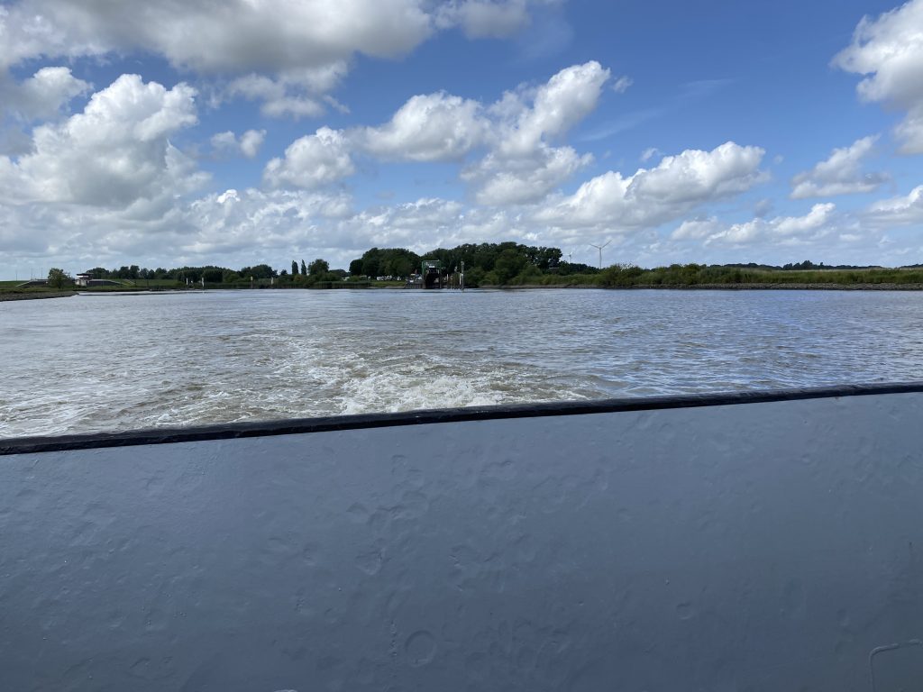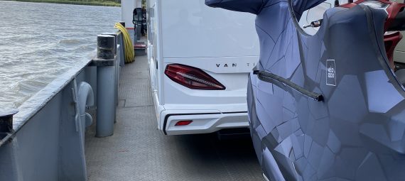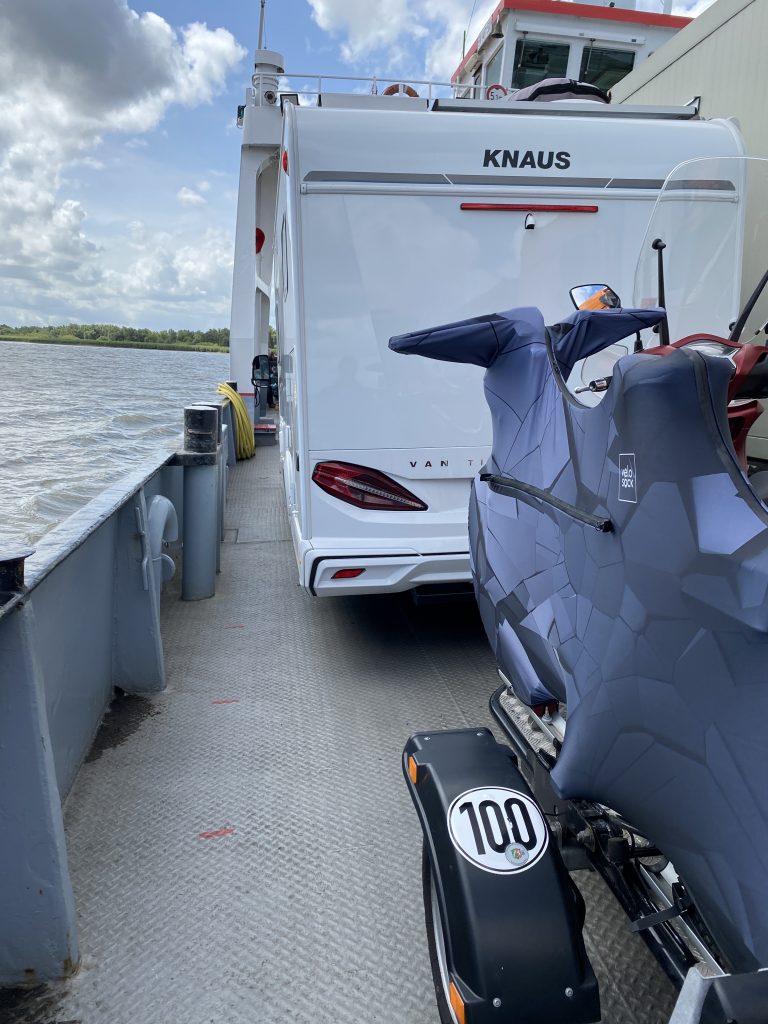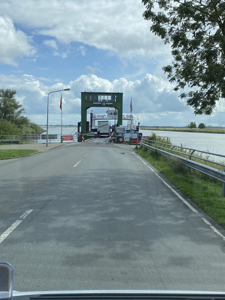 Heute geht‘s von Ostfriesland rüber nach Schleswig-Holstein. Nach gut einer halben Stunde war es so weit. Ich konnte auf die Fähre Wischhafen-Glückstadt fahren. Es war relativ eng, aber alle Spiegel sind noch dran.