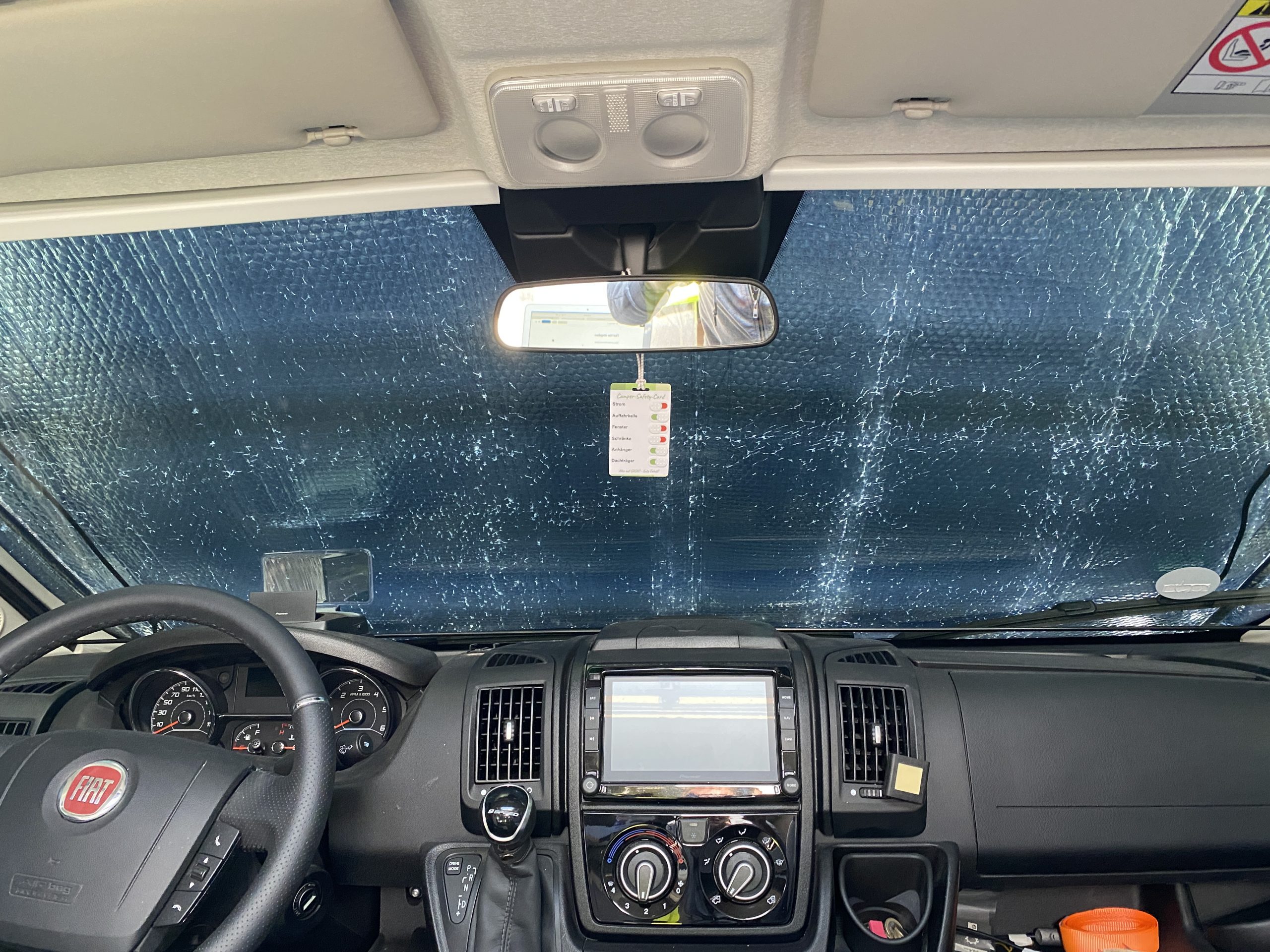 Das absolute Muß-ich-haben für den Winterurlaub ist die Thermoabdeckung für’s Fahrerhaus. Getestet und benutzt habe ich die Thermoabdeckung von Hindermann. Die Abdeckung gibt es in unterschiedlichen Ausstattungen. Als Fensterabdeckung oder auch als volle Motorraumabdeckung. Ich habe die Minimalversion getestet, die nur die Fahrerhausfenster abdeckt. Wichtig anzumerken. Diese Abdeckung ist nicht nur für den Winter geeignet, sondern auch als Sonnen-/Wärmeschutz für den Sommer nutzbar ist.